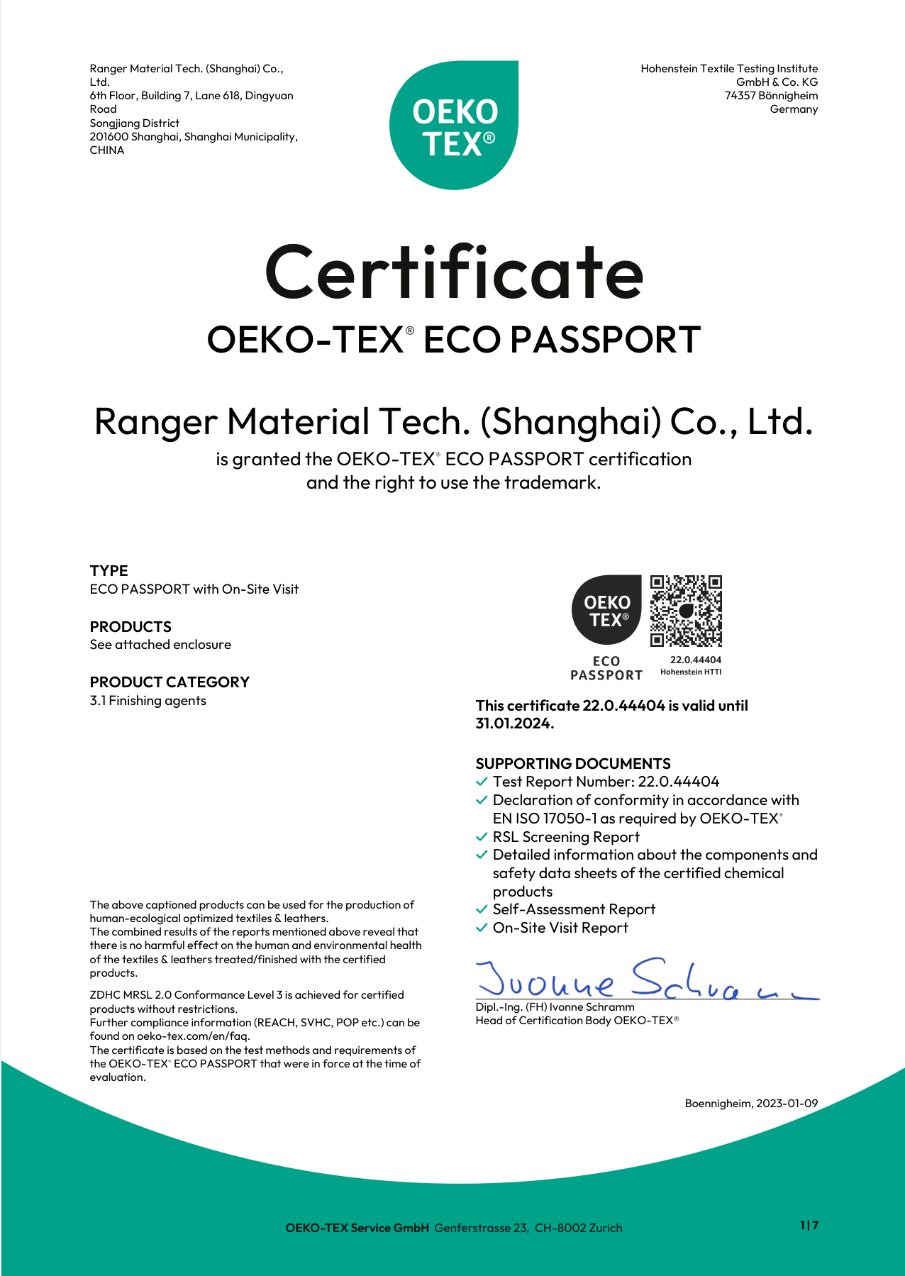 Bluesign, ZDHC level 3 & ECO Passport level 3 certified certified
